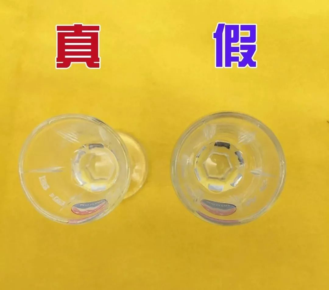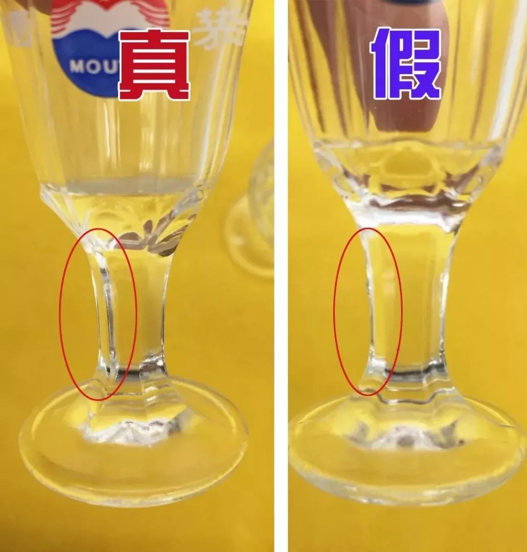 假茅台:杯脚处往往有未处理干净的玻璃毛边凸起,手感差。