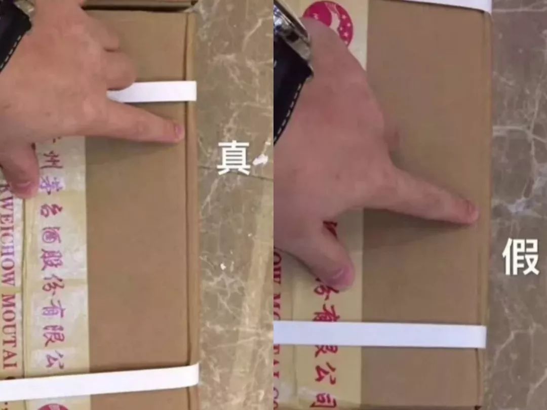 真茅台的包装箱子是特别定制的,边缘会有折痕。假茅台箱子质量较差。